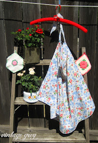 Well, I finished the vintage shutters! What do you think? I was going to do vintage linens, but I wanted something a little brighter for the summer. So, I chose some of my favorite Heather Bailey fabrics. Just love them!!